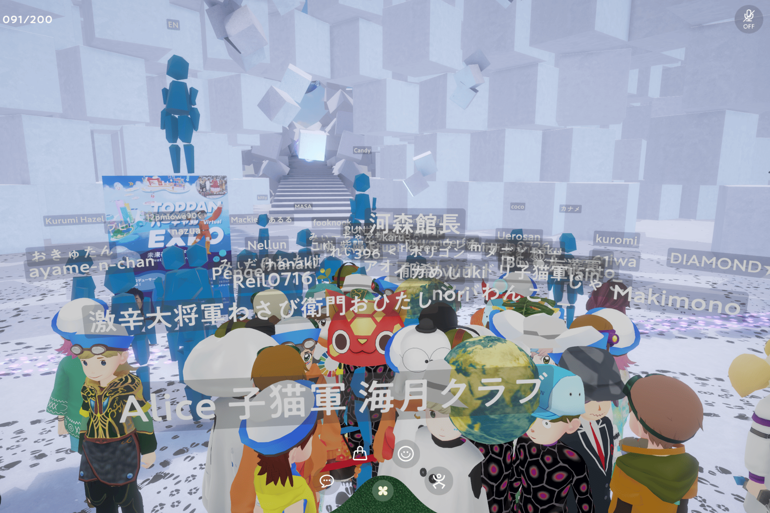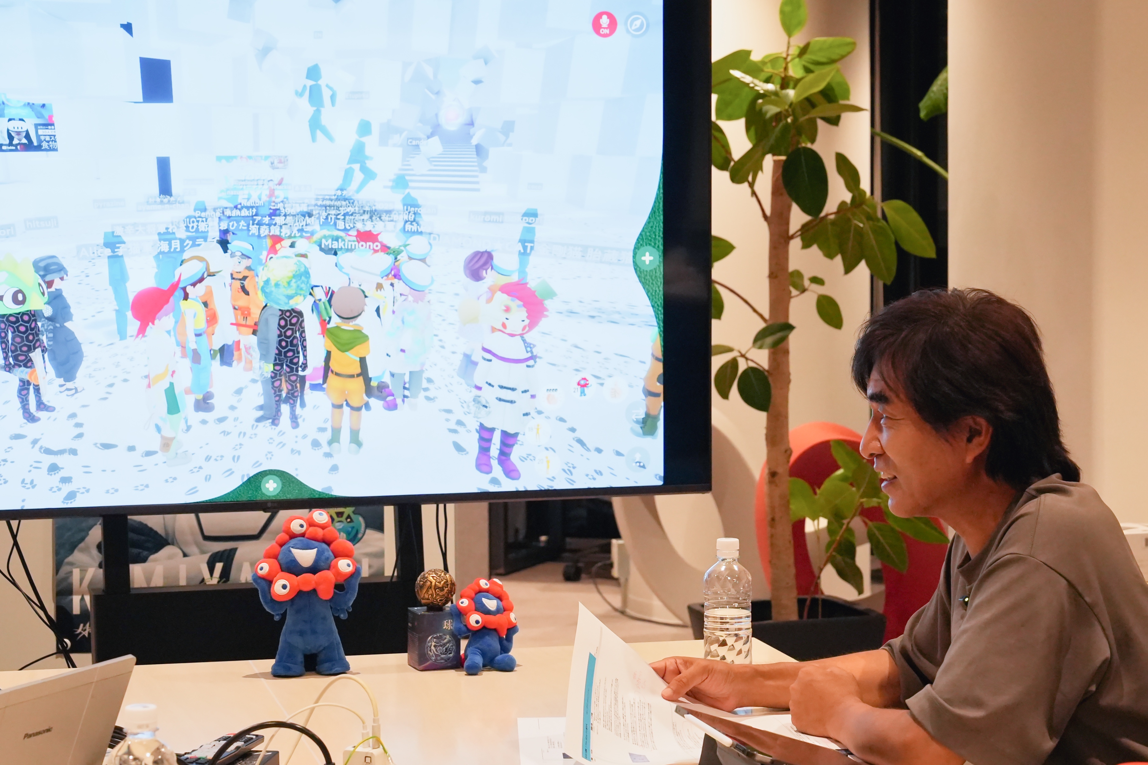 当日は全国からバーチャル空間にこれまでバーチャルイベントで最も多い100名以上が参加。参加者は自身のアバターを操作しながら、河森プロデューサーの解説と共にバーチャル空間を冒険し、パビリオンの核心である「いのちのつながり」を体感しました。