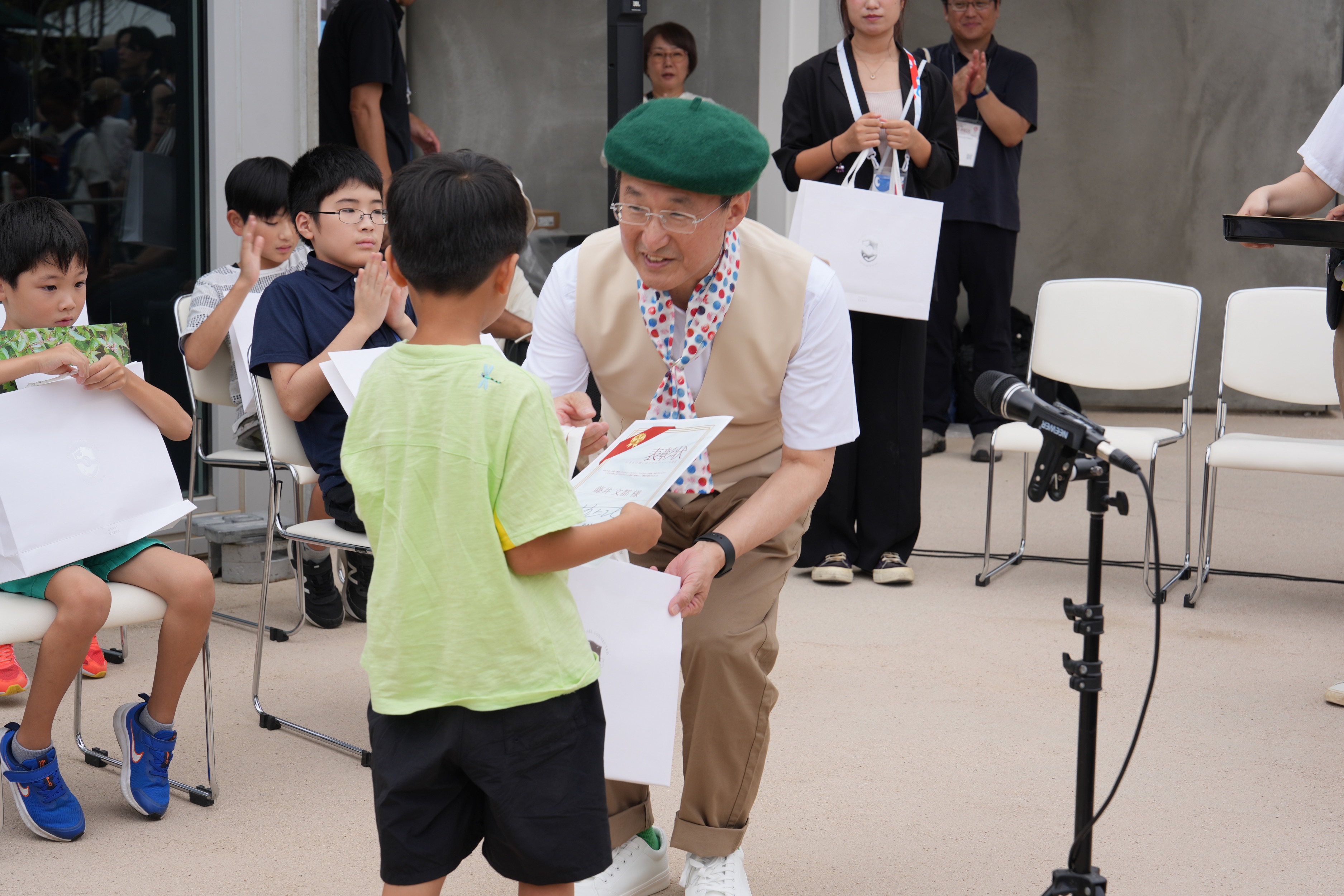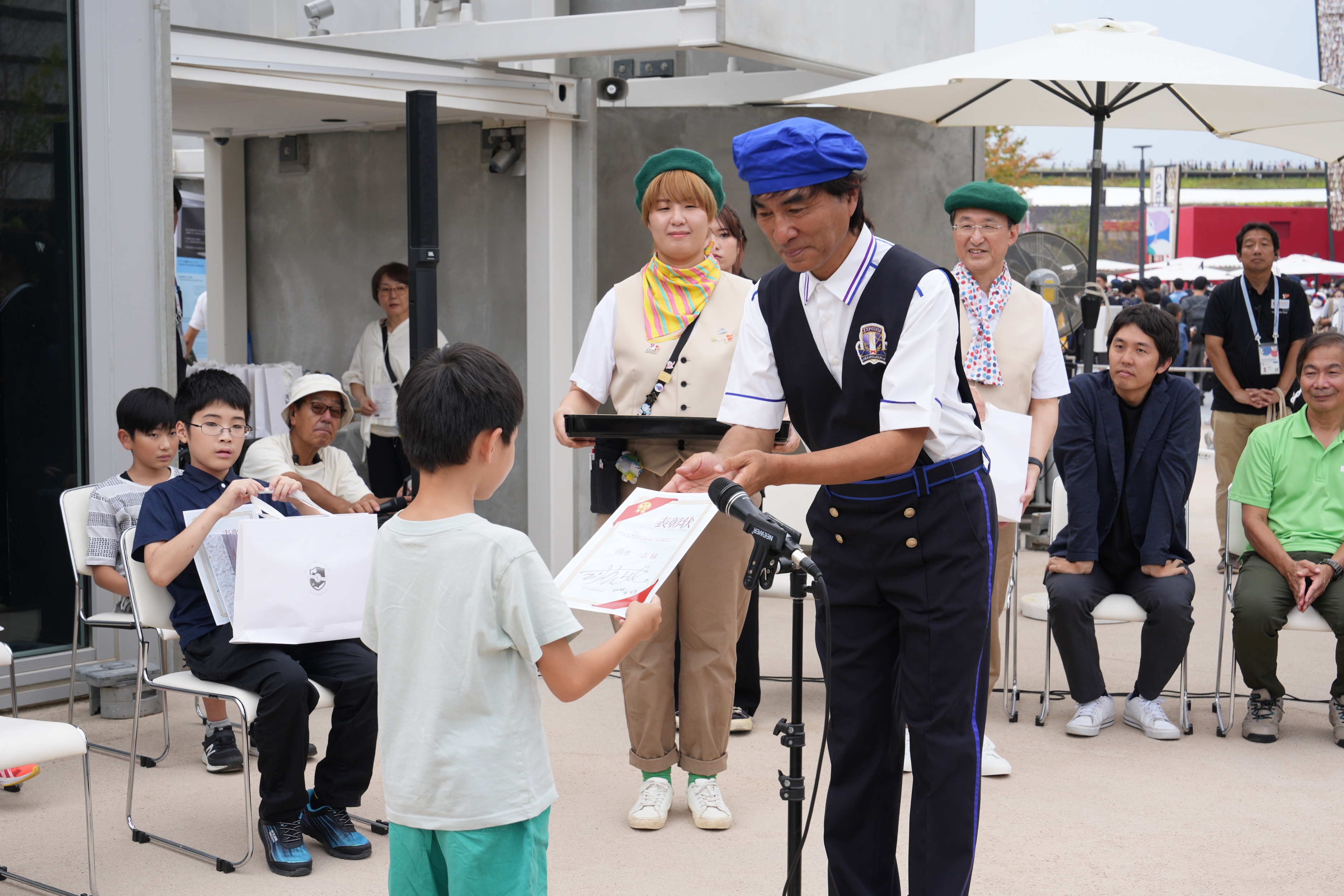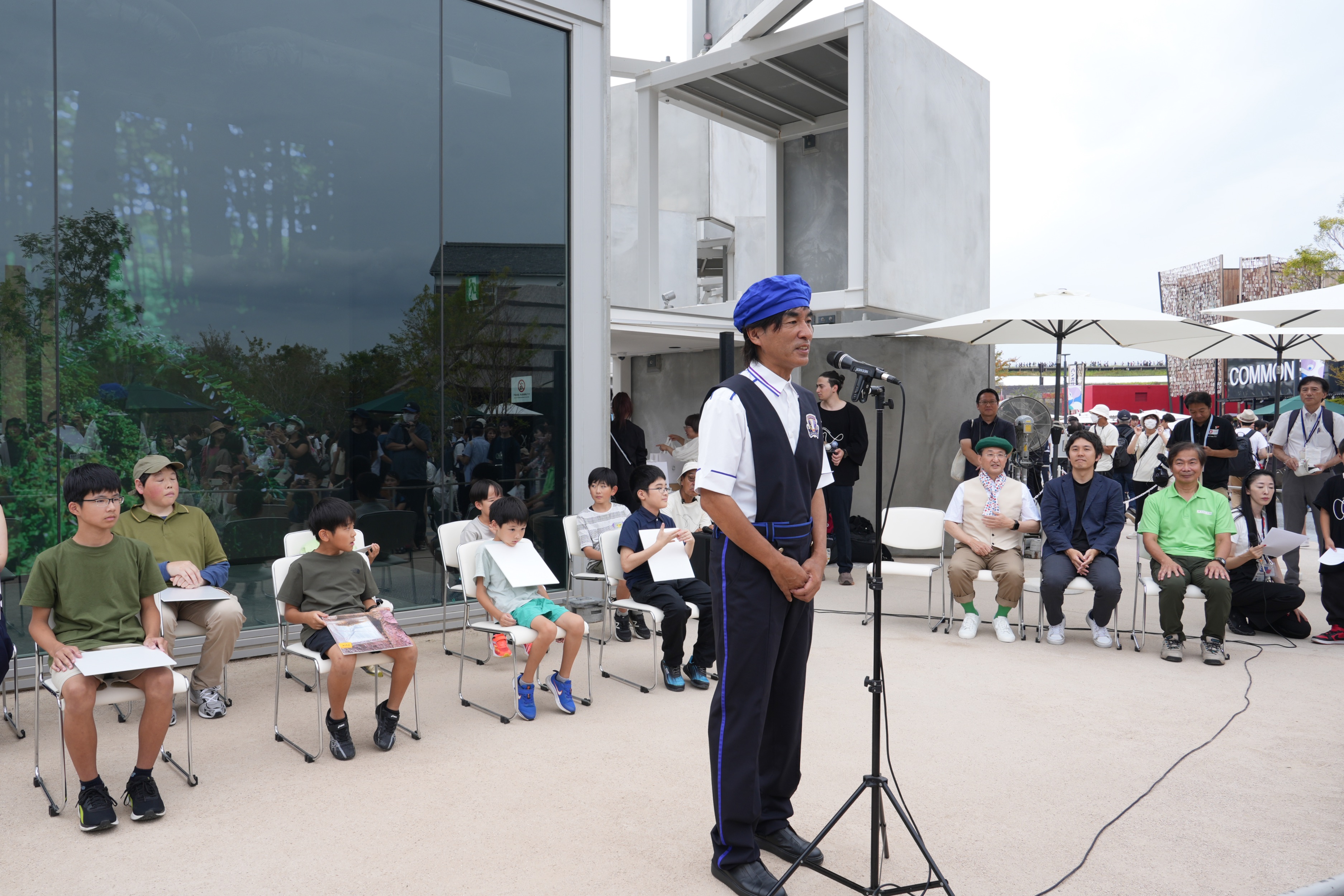 各イベント参加者はイベント内で見つけたいきものを、スマートフォンアプリ「バイオーム」で記録・投稿。投稿された生き物を河森プロデューサーが選考し、大阪・関西万博「いのちめぐる冒険」パビリオン「宇宙の窓」前で表彰式が行われました。