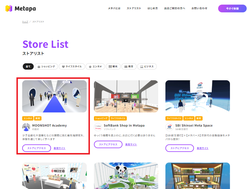4,ストアリストから「MOONSHOT Academy」を選択。