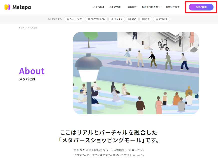 3,メタパサイトの右上にある「今すぐ体験」ボタンからメタパを起動します。