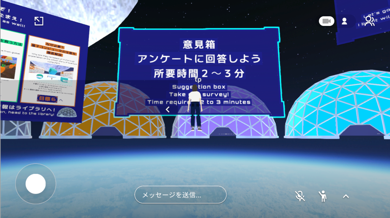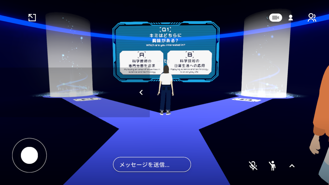 「ムーンショット型研究開発制度について、直観的に楽しく学べるメタバースとなっています。1人ではもちろん、チャット・ボイスチャット機能を活用して是非ご友人と一緒にお楽しみください。」