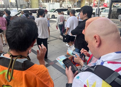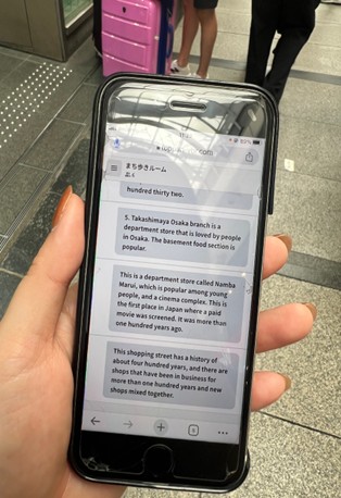 この方式により、ツアー中の直接的な発話を最小限に抑えることができます。これは、特に観光客で賑わう商店街内で、ガイドの発声によるコミュニケーションが難しい状況において、非常に大きな利点となりました。